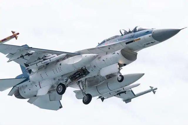 图 10. 飞行中的一架日本航空自卫队 F-2 型战斗机,翼尖挂载 2 枚 AAM-3