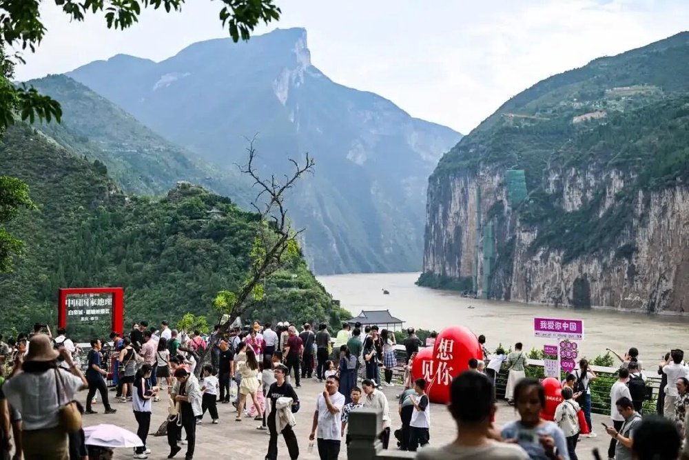 ▲10月5日,游客在重庆奉节白帝城景区观赏夔门景色。记者 陈晔华 摄/新华社